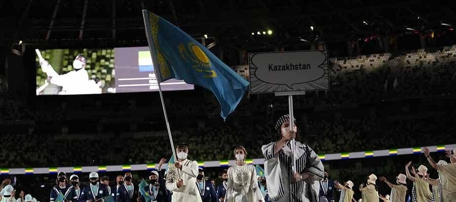 開会式で入場するカザフスタン代表【写真:AP】