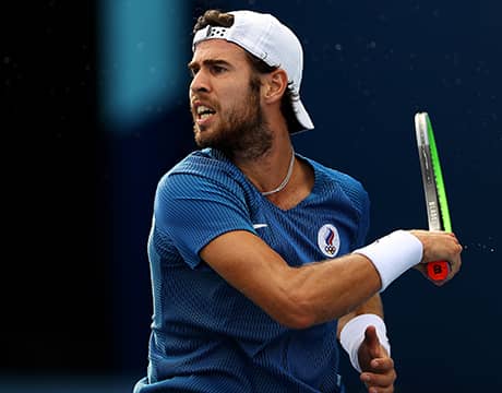 東京オリンピック(日本/東京、有明テニスの森、ハード)は29日、男子シングルス準々決勝が行われ、第12シードのK・ハチャノフ(ロシア)が第14シードのU・アンベール(フランス)を7-6 (7-4), 4-6, 6-3のフルセットで下し、ベスト4進出を果たした。