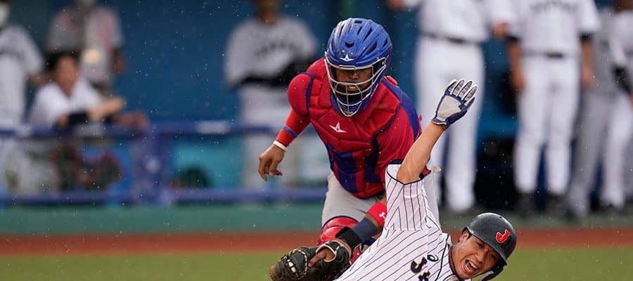 1点ビハインドの8回だ。先頭の山田が四球で出塁。坂本勇人内野手(巨人)の犠打で走者を進めると、吉田正尚外野手(オリックス)が三遊間を破る左前安打を放ち、二塁走者の山田が本塁へ突入した。だが、左翼手・ミーゼスからノーバウンドでの好返球により、足から滑り込んだ山田は本塁でタッチアウト。稲葉篤紀監督はチャレンジしたものの、リプレー検証でも判定は覆られずに同点のチャンスを逃した。