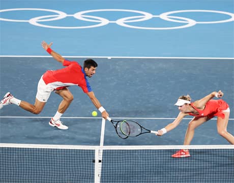 東京オリンピック(日本/東京、ハード)は30日、テニスの混合ダブルス準決勝が行われ、N・ストヤノビッチ(セルビア)/ N・ジョコビッチ(セルビア)組はE・ヴェスニナ(ロシア)/ A・カラツェフ(ロシア)組に6-7 (4-7), 5-7のストレートで敗れ、決勝進出とはならなかった。