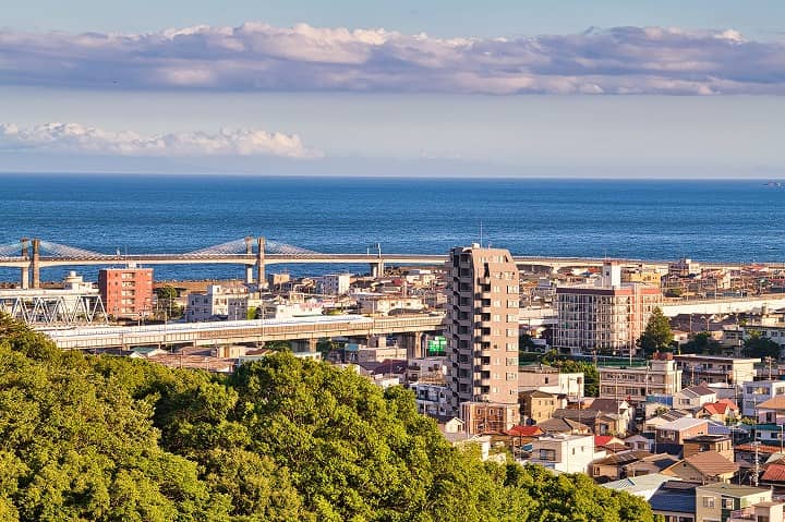 これは小田原競輪場と選手宿舎との間の道路から見える景色を撮ったものです。小田原は競輪場から宿舎が少し離れていて、開催中の選手はバスに乗って毎日、競輪場と宿舎を行き来するのですが、車窓から見える景色が綺麗で、いつか撮りたいと思っていました。そして、やっと先日の小田原参加後に実現。しかも運よく東海道新幹線が通ったので、より良い写真になったと思います!