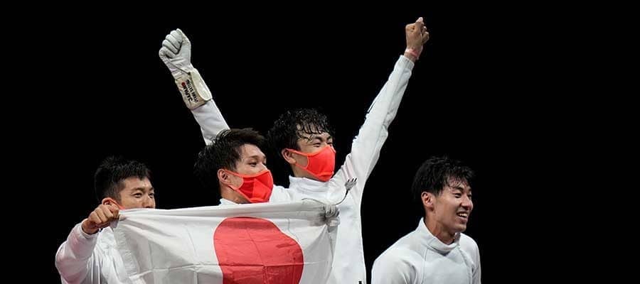 フェンシング男子エペ団体で金メダルを獲得した日本代表の選手たち【写真:AP】