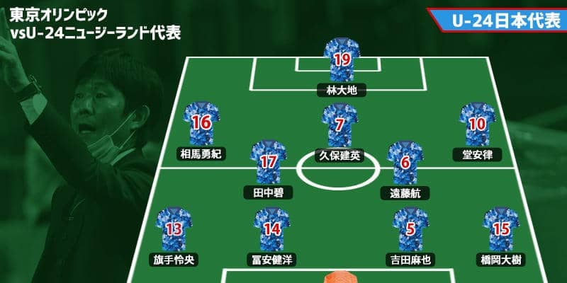 31日、東京オリンピックの準々決勝でU-24ニュージーランド代表と対戦するU-24日本代表のスターティングメンバーが発表…