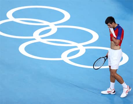 東京オリンピック(日本/東京、ハード)は31日、テニスの男子シングルス3位決定戦が行われ、第1シードのN・ジョコビッチ(セルビア)は第6シードのP・カレノ=ブスタ(スペイン)に4-6, 7-6 (8-6), 3-6のフルセットで敗れた。さらにN・ストヤノビッチ(セルビア)との混合ダブルス3位決定戦を棄権し、今大会でメダル獲得とはならなかった。