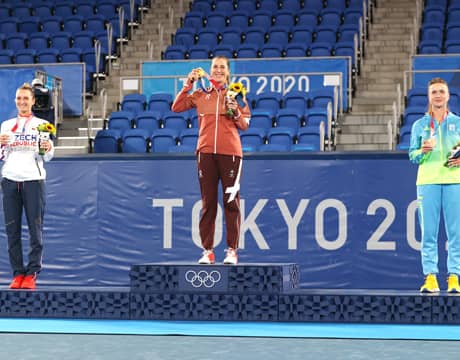 東京オリンピック(日本/東京、ハード)は31日、テニスの女子シングルス決勝が行われ、第9シードのB・ベンチッチ(スイス)が世界ランク42位のM・ボンドロウソワ(チェコ)を7-5, 2-6, 6-3のフルセットで破り、スイス人の女子で初の金メダルを獲得した。