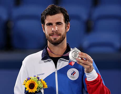 東京オリンピック(日本/東京、ハード)は1日、テニスの男子シングルス決勝が行われ、第12シードのK・ハチャノフ(ロシア)は第4シードのA・ズベレフ(ドイツ)に3-6, 1-6のストレートで敗れ、ロシア人ではシドニー・オリンピックで優勝したY・カフェルニコフ(ロシア)以来となる金メダル獲得とはならなかった。試合後に「僕は金メダルを夢見ていた。次のオリンピックで挑戦したい」と悔しさを滲ませた。