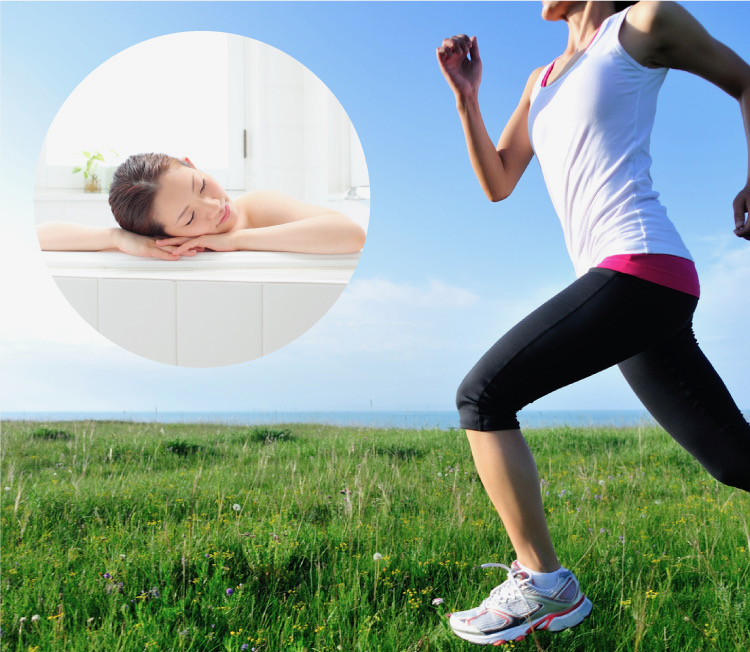 その有効成分である重炭酸イオンを効率的に生み出すのが、独自製法の入浴剤『アスリートリラックス』である。現在、市販されている入浴剤の多くは、錠剤から出る炭酸ガスが有効成分とされているが、炭酸ガスはお湯の中に入れた際、上に抜けてしまい、有効成分としてお湯に溶け込むことはない。一方の『アスリートリラックス』はお湯の中に入れた際、瞬間的に重炭酸イオンへと変化し、お湯の中に豊富に溶け込んでいく。そして、高濃度でお湯の中にとどまるため、体を芯から温めて血行を促進。冷えや肩こり、腰痛、疲労などの諸症状を緩和してくれるのだ。快眠にもつながるので、翌日もスッキリ目覚めることができるという。