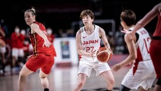 準々決勝第4Q終盤、決勝3Pショットを放つ直前の林。ゴールをしっかりとらえ、完璧なリズムから歴史を変えるレインボーが生ま…