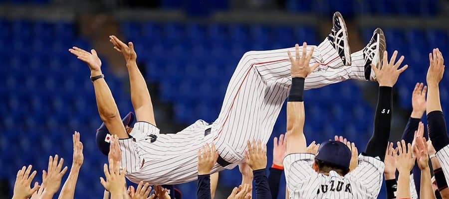 胴上げされる侍ジャパン・稲葉篤紀監督【写真:Getty Images】