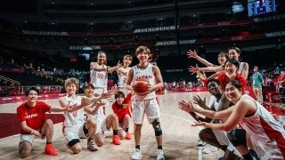 チーム全員からの「ルイ、ありがとう」と町田からの「皆さんのおかげです」という声が聞こえそうな一枚(写真/©fiba.ba…