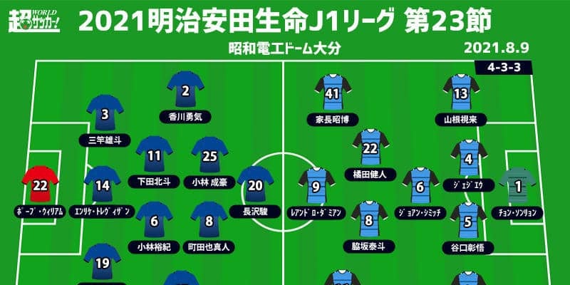大分トリニータ(19位/16pt) vs 川崎フロンターレ(1位/58pt)