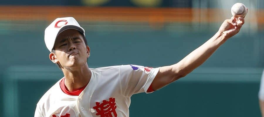 2019年夏の甲子園、背番号11で登板機会も得た「スーパー1年生」。昨夏の交流大会、今春の選抜では1番を着けてチームを背負った。この試合、投げるのはその選抜以来というカーブがキーになった。90キロ台のボールでうまく緩急をつけ、倉敷商を手玉に取った。