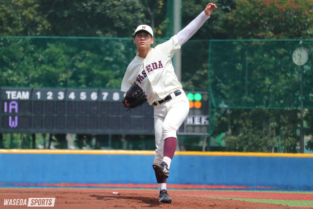早大は初回、中川卓也(スポ3=大阪桐蔭)と丸山壮史主将(スポ4=広島・広陵)が適時打を放ち幸先よく2点を先制する。先発の清水大成(スポ2=大阪・履正社)は初回を三者凡退に抑えるが、3回に連打を浴びて3点を失い、課題の残る登板となった。4回以降は5人の投手リレーで最小失点に抑え打線の援護を待った。7回に小西優喜(文構4=東京・早実)の犠飛で1点を返したが反撃及ばず。好機を生かし切れなかった早大は接戦を落とした。今月7日に行われた、読売ジャイアンツ2軍とのプロ・アマ交流戦での敗戦(●早大1-7)に引き続き、対外試合2連敗となった。