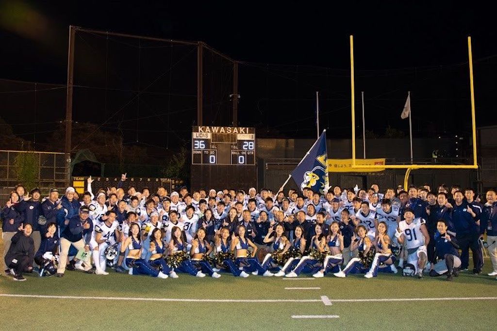 私がライオンズに入部してから初めて勝利した試合の際の写真です。この試合はX1super残留をかけた重要な試合でもあり、終始接戦でした。観客、選手、チア、全員がひとつになり、掴んだ勝利は感動もので、ライオンズに入れて本当に良かったと思えた瞬間でした。
