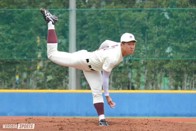 正直ボコボコに打たれて、自分でもちょっと球は良くなってきてたんですけど…。それで打たれたとなると配球かなと思って、岩本(久重副将、スポ4=大阪桐蔭)とそこを話して臨みました。変化球でカウントを作って真っ直ぐで押したり、逆に真っ直ぐで差し込ませてから変化球だったり、この前の試合は真っ直ぐを続けすぎて狙われて打たれてしまって、変化球とのコンビネーションができていなかったので、そこを今日は反省を生かして投球できたのかなと思います。