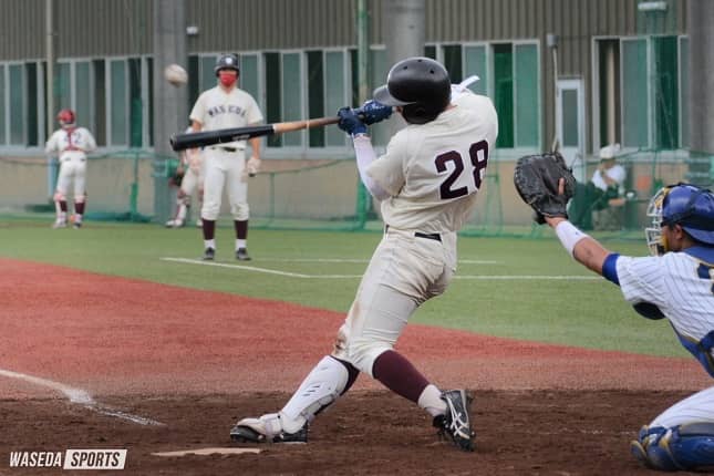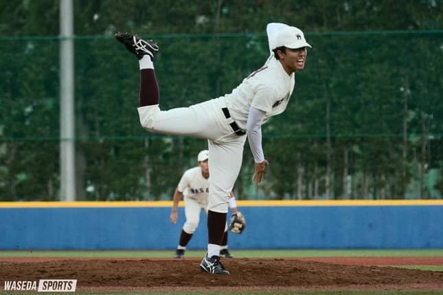試合は今秋のドラフト候補にも挙げられる相手先発・山﨑凪(4年)を相手に3回までパーフェクトに封じられる苦しい展開。早大先発の徳山壮磨(スポ4=大阪桐蔭)は、初回に犠飛で先制を許すが、それ以降は立ち直り、最少失点で先発の役目を果たした。打線は相手投手が交代した4回、逆転に成功する。安打と四球などで2死満塁とすると、橘内俊治(教4=東京・早実)が左中間に走者一掃の三塁打。このリードを投手陣が守り切り、3試合ぶりの勝利を収めた。