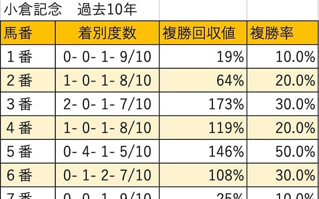 【小倉記念 枠順データ分析】昨年は3枠の人気薄2頭が揃って馬券絡み | その他競技