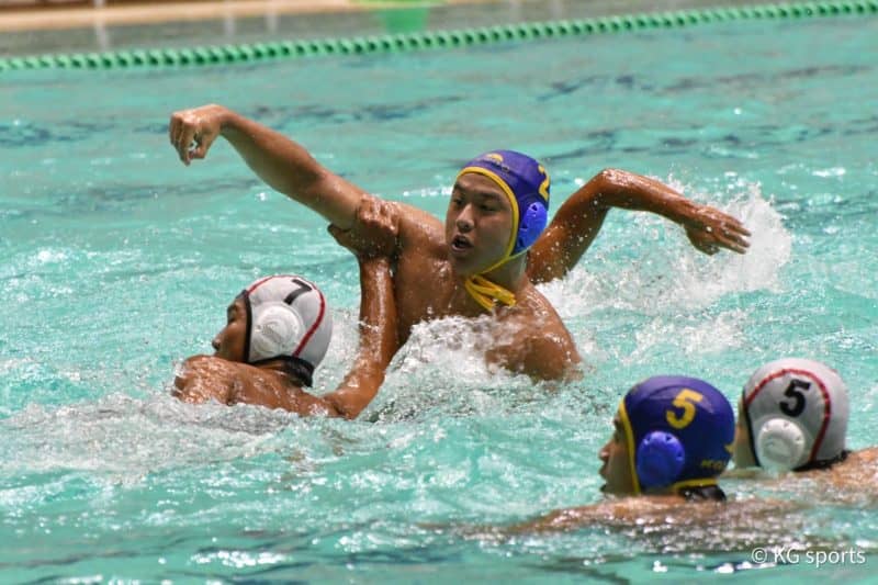 <写真・ ゴールを狙う青島> 8月13日、東和薬品RACTABドームにて2021年度第95回関西学生選手権水泳競技大…