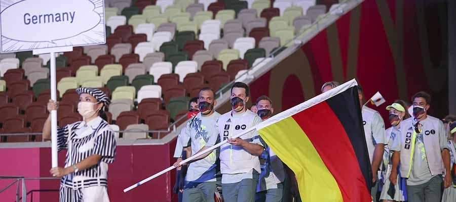 東京五輪開会式でドイツは自国の国旗と日の丸の両方を持って行進【写真:Getty Images】