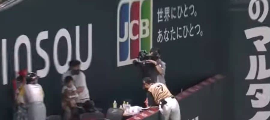 2つの好プレーが起こったのは6回だった。1死走者なしからソフトバンク三森が放った打球は左翼ファウルゾーンへ。左翼手・西川は三塁側フェンスに足をかけ、ぶつかりながら好捕したが、観客席には親子連れのファンの姿が。打球が向かってくるとパパは幼い子どもをすぐさま抱えて離れ、事なきを得た。