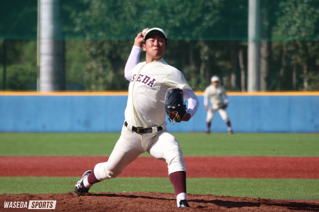 試合は先発の徳山壮磨(スポ4=大阪桐蔭)が初回から安定した投球を見せる。出塁こそ許すものの要所をきっちりと締め、9回10奪三振1失点の好投を見せた。一方の打線は2回、けがからの復帰戦となった吉納翼(スポ1=愛知・東邦)が中前打を放ち出塁すると、続く福本翔(社4=東京・早実)が右越え本塁打を放ち2点を先制する。福本はその後も2本の安打を放ち好調ぶりをアピールした。8回には中川卓也(スポ3=大阪桐蔭)の特大本塁打も飛び出しさらに1点を追加。4-1で危なげない勝利を収めた。