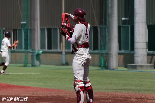 捕手は守備が一番大事だと思っているので、打順も8番だったということもあり今日はとにかくロースコアで抑えるということがチームの勝利につながると思っていたので、結果的に徳山さん(壮磨、スポ4=大阪桐蔭)が好投して勝って終われたというのは良かったかなと思っています。
