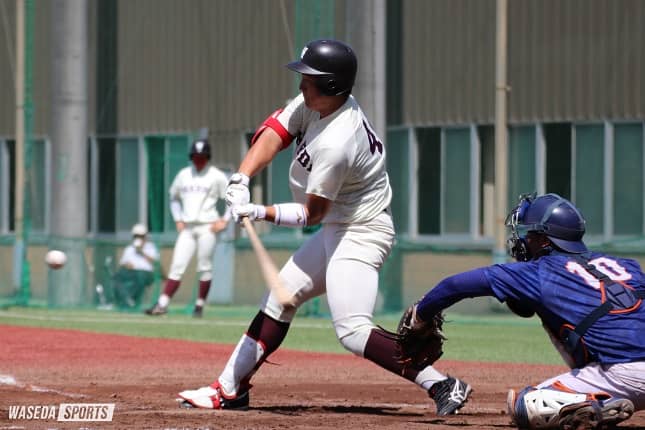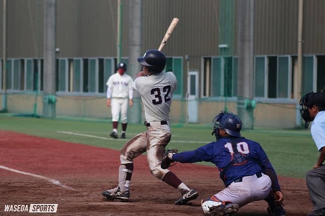 この日オープン戦初スタメンとなった神林壮真(スポ4=東京・成蹊)が1安打1打点の活躍を見せた。先頭で迎えた第1打席は初球をミートし右前に運ぶと、1死満塁の好機で迎えた第2打席では詰まりながらも左翼に犠飛を放った。今春のリーグ戦ではベンチ入りこそしたものの出場機会はなし。4年間の集大成となる今秋に向け、『叩き上げ』のこの男が耽々(たんたん)と出場機会を狙う。
