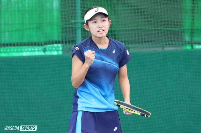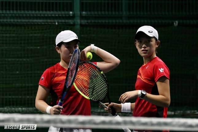シングルス予選で2人とも敗れるも、ダブルスでは勝ち上がってきた渡邉早和子(社3=愛媛・新田)齋藤優寧(スポ1=岡山学芸館)もストロークを主体に攻めるプレーを展開。しかし、狙いにいった球が惜しくもアウトになるといったポイントが散見され、思うように試合を進められない。第4ゲームからは続けて4ゲームを奪われ、第1セットは3-6とされる。第2セットは序盤からサービスゲームをキープし合う展開。リターンから強打してブレークを狙うも、ポイントに結びつかない。第9ゲームにはブレークを許してしまい万事休す。1回戦で敗退となった。同じくシングルス予選では2人とも敗れてしまっている足立理帆(社3=埼玉・山村学園)、松田望愛(文構3=東京・早実)組はミスの多い相手に対して序盤から優位に立ち、甘くなった球はボレーで仕留めていく。しかし所々でもったいないミスもあり、大きく相手を引き離すことはできず。ストレート勝ちで1回戦を突破したが、さらに安定して決められるように修正が求められるだろう。