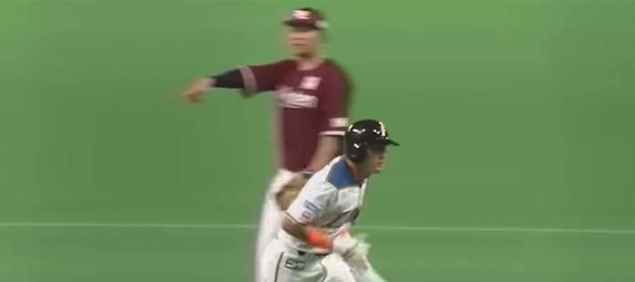 代走で一塁走者となっていたのは、日本ハムの杉谷。飛球の行方を見ながら二塁付近まで走り、左飛になると一塁に帰塁した。しかし近くにいた二塁の浅村は、二塁ベースを指差してアピール。よく見ると、杉谷は1度踏んだ二塁ベースを踏まずに空過して一塁まで戻っており、アウトに。その旨を審判団は場内に説明した。