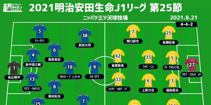 【明治安田生命J1リーグ第25節】 2021年8月21日(土) 18:00キックオフ 横浜F・マリノス(2位/56pt)…