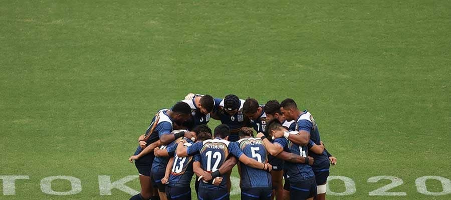試合前に円陣を組む7人制ラグビー男子日本代表【写真:Getty Images】