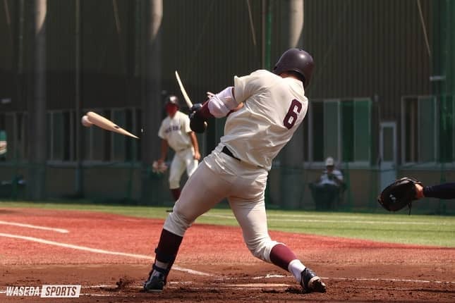 そうですね。自分が積極的に打てるようになった要因を話すと、学生コーチの占部晃太朗(教4=早稲田佐賀)の存在が大きいです。毎晩実戦形式で変化球や速球を投げてもらったので、「あいつのために打つぞ」という気持ちでいました。毎日投げてくれるおかげで速い球も見慣れて、スイングすることに対する恐怖心が払しょくされただけでなく、初球から振っていける自信が、夜の自主練習で培われてきました。占部にはとても感謝しているし、これからも頑張ろうという気持ちです。