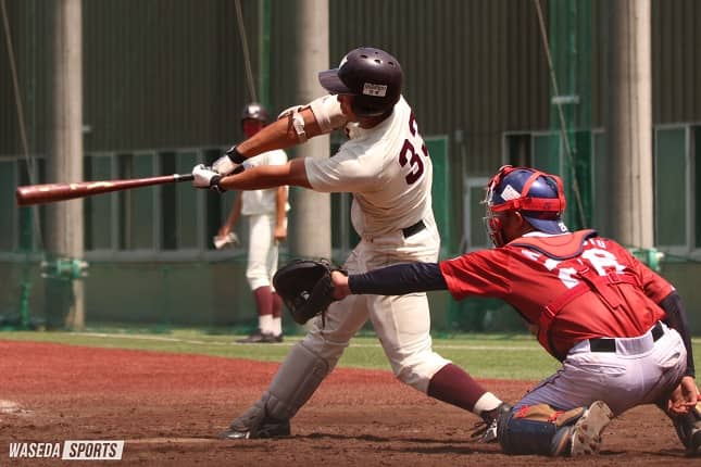 試合は、岸本朋也(平31スポ卒)と大野大樹(平26社卒)に安打が飛び出すが、登板した竹田、北濱竣介(平30人卒)がそれぞれ1失点。早大に軍配が上がるかたちとなった。