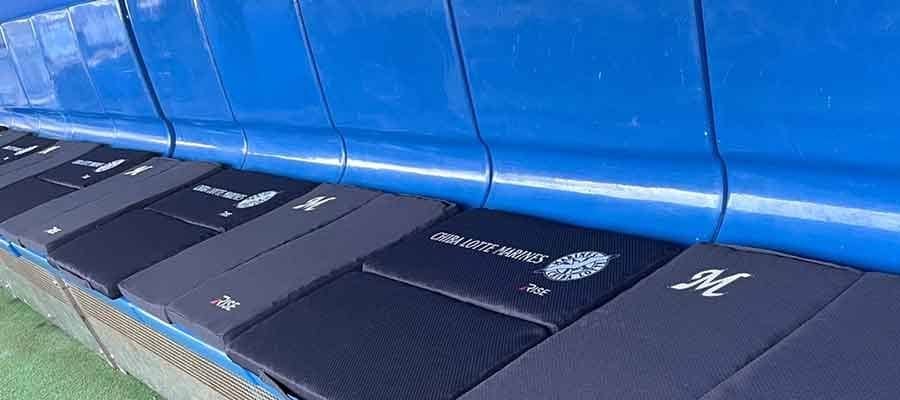ZOZOマリンのベンチに設置された「スリープオアシス モバイルシートクッション」【写真提供:千葉ロッテマリーンズ】