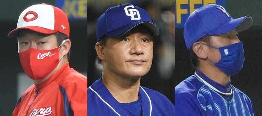 広島・佐々岡真司監督、中日・与田剛監督、DeNA・三浦大輔監督【写真:荒川祐史】
