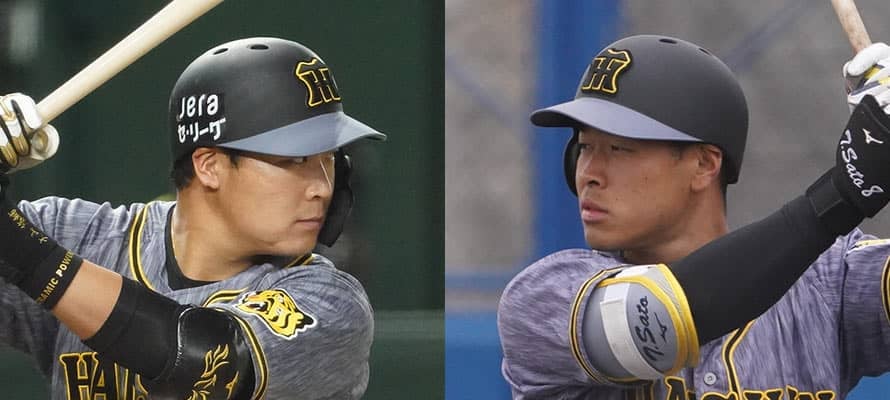 阪神・大山悠輔(左)と佐藤輝明【写真:荒川祐史】