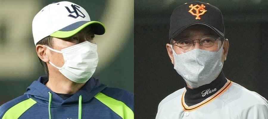 ヤクルト・高津監督(左)と巨人・原監督【写真:荒川祐史】