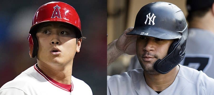 エンゼルス・大谷翔平(左)とヤンキースのサンチェス【写真:AP】