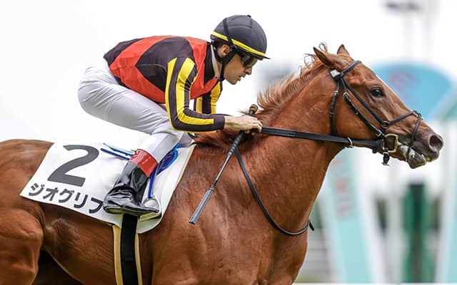 6月26日、東京芝1800mの新馬戦を制したジオグリフ(撮影:下野雄規)