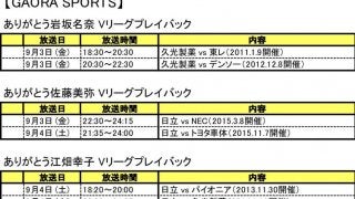 バレーボールテレビ番組情報(9/1〜30放送予定分)※男子アジア選手権配信について追加情報