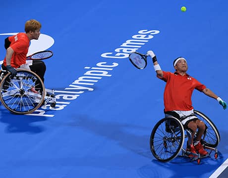 東京パラリンピック(日本/東京、有明テニスの森、ハード)のテニス競技は1日、クアードダブルス3位決定戦が行なわれ、諸石光照/ 菅野浩二組が、A・コトリル(イギリス)/ A・ラプソーン(イギリス)を7-5, 3-6, 7-5のフルセットで下し、銅メダルを獲得した。