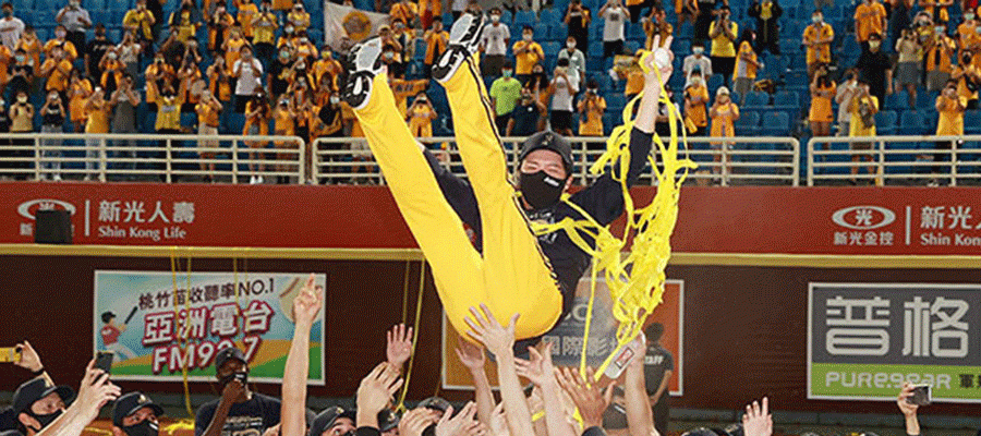 胴上げされる中信兄弟・林威助監督【写真提供:CPBL】