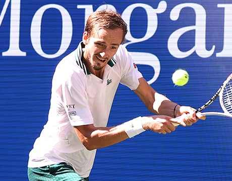 テニスの全米オープン(アメリカ/ニューヨーク、ハード、グランドスラム)は7日、男子シングルス準々決勝が行われ、第2シードのD・メドベージェフ(ロシア)が世界ランク117位のB・ファン・デ・ザンスフルプ(オランダ)を6-3, 6-0, 4-6, 7-5で破り、3年連続3度目のベスト4進出を果たした。会見では「準決勝は経験もしているし、緊張はしないよ」とコメントした。