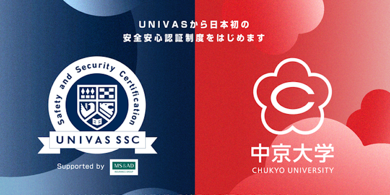 一般社団法人大学スポーツ協会(UNIVAS)は8日、安全で安心な大学スポーツ活動の環境を整備するため、MS&ADインシュアランス グループ ホールディングス株式会社と連携して、日本初の安全安心認証「UNIVAS Safety and Security Certification」(UNIVAS SSC)制度を構築、その第一号認証が中京大学に決定したことを発表した。