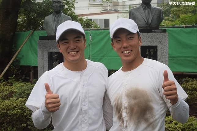 最終回に登場するのは、主将を務める丸山壮史(スポ4=広島・広陵)と、正遊撃手・熊田任洋(スポ2=愛知・東邦)の二遊間コンビだ。左打ちの堅守巧打の内野手として、共通点も多い2人。丸山にとってはラストシーズンとなる今秋のリーグ戦に向け、強い意気込みを伺った。
