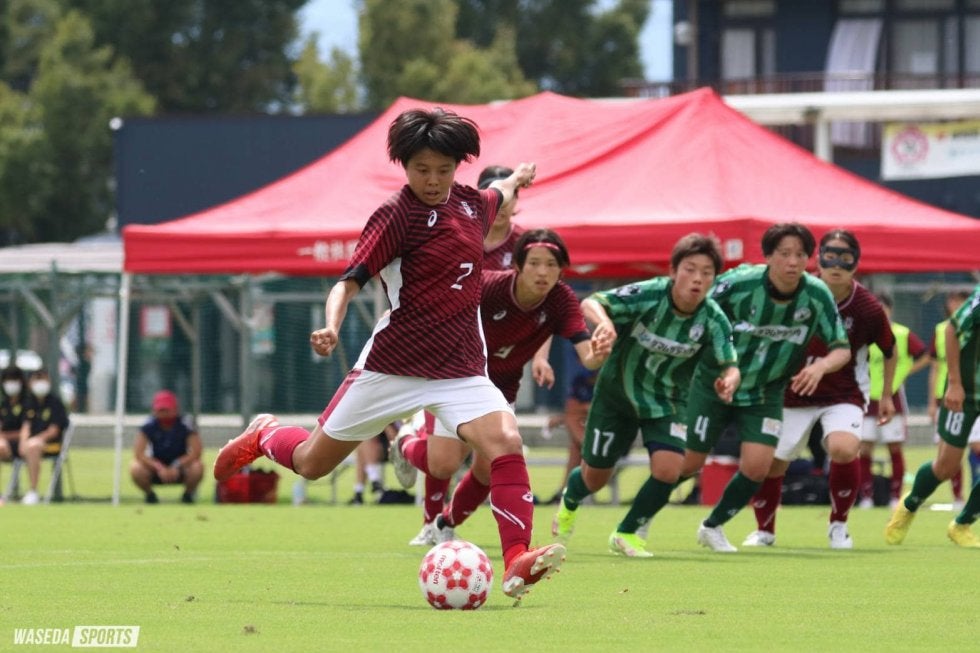 監督からは、とにかく前線への動き出しを増やしてほしいと言われていました。それを意識しつつ、本当はシュートのシーンではもうワンプレー早く廣澤(真穂、スポ3=ノジマステラ神奈川相模原ドゥーエ)が(エリアに)入った時にサポートに入って、左に落としてもらって打ちたかったのですが、出遅れました。でも、そこでシュートのこぼれがちょうど自分のところに来て、あれはもう流し込むだけでしたね(笑)。