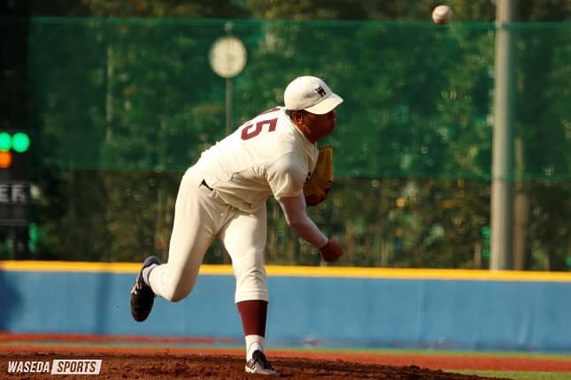 この日の先発・徳山壮磨(スポ4=大阪桐蔭)は2回、1死から連打を浴びピンチを招くが、後続を連続三振に抑える。6回には三者連続三振を奪うなど、安定した投球で7回を無失点の好投。リーグ戦に向け万全の状態をアピールした。一方の打線は4回、蛭間拓哉(スポ3=埼玉・浦和学院)が右翼の防球ネットを超える特大のソロ本塁打を放つ。8回には右前適時打を放ち、蛭間は計2打点を記録した。同じく8回、岩本久重副将(スポ4=大阪桐蔭)の犠飛でさらに1点を追加し、Hondaとの接戦を制した。