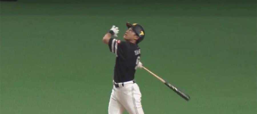 ソフトバンクの柳田が日本ハム立野からドーム天井直撃の遊飛を放つ
