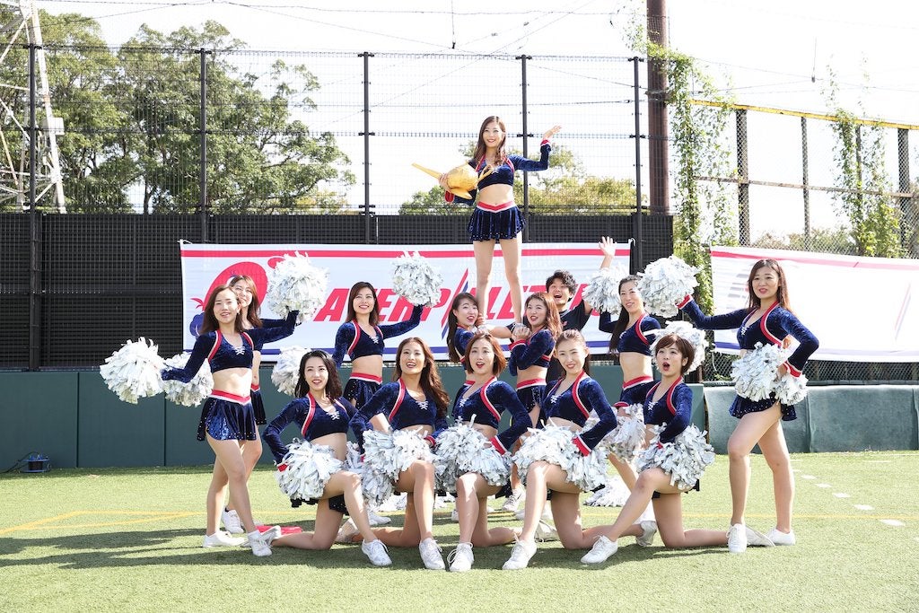 私たちは電通グループ社員で構成されたチアチームで、平日はOL、休日はチアの活動を行っています。コロナ禍で春シーズンは試合ができませんでしたが、この秋試合開催が決定しています!!ぜひ、アツい選手の姿、そして私たちの華やかなパフォーマンスを見に来てください!!