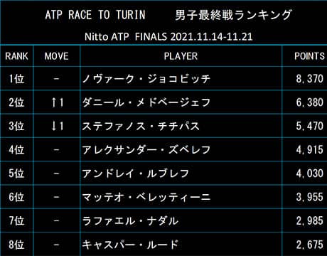 男子テニス最終戦のNitto ATPファイナルズ(イタリア/トリノ、室内ハード)出場をかけた「RACE TO TURI…